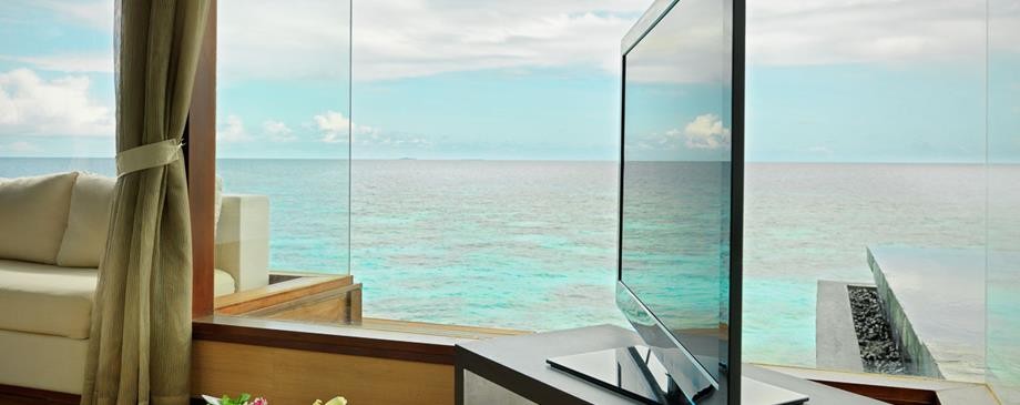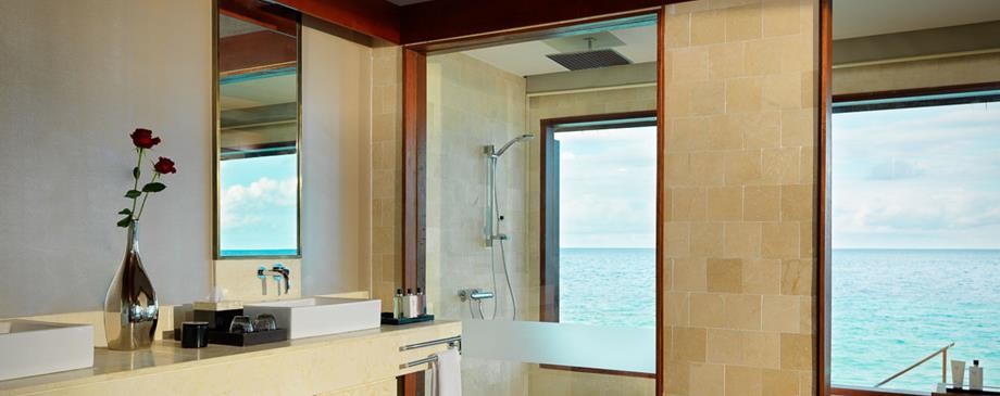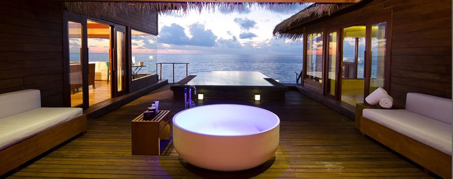 Площадь · 270 квадратных метров • Терраса с открытым персональным бассейном • Ванной на открытом воздухе и спуском в воду • Гостиная с обеденной зоной • Спальня с кроватью king-size • Гардеробная • Ванная комната с душевой кабиной с функцией «тропический дождь» • Гостевой туалет • Расположены в комплексе Ocean Pearls на сваях над водой • Панорамный вид на океан • Телевизор • Медиа-центр Apple • Док-станция для iPod • WI-FI доступ в Интернет • Винный холодильник • Мини-бар • Сейф • Кофемашина Nespresso и оборудование для приготовления чая • Утюг и гладильная доска • Фен • Услуги персонального камердинера
