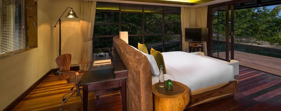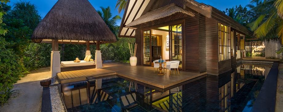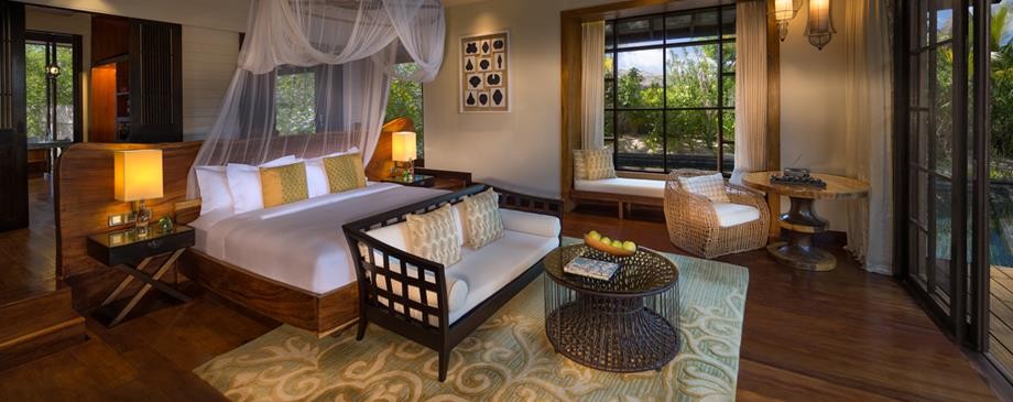 Площадь · 184 квадратных метров • Терраса с открытым персональным бассейном • Спальня с кроватью king-size • Гардеробная зона • Ванная комната на открытом воздухе с ванной и душем с функцией «тропический дождь» • Выход к пляжу • Вид на пляж и закат • Телевизор • WI-FI доступ в Интернет • Док-станция для iPod • Сейф • Мини-бар • Оборудование для приготовления чая и кофе • Утюг • Фен