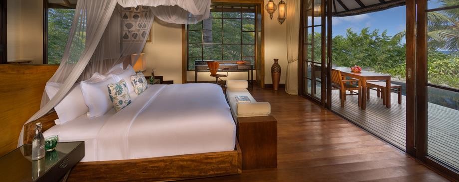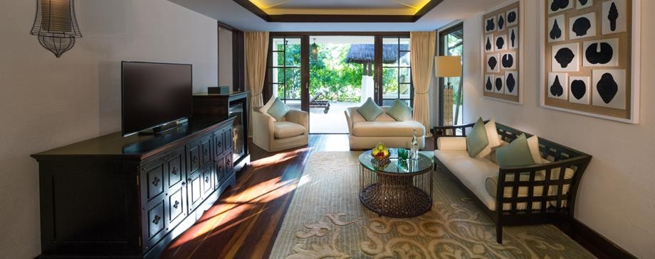 Площадь · 184 квадратных метров • Терраса с открытым персональным бассейном • Спальня с кроватью king-size • Гардеробная зона • Ванная комната на открытом воздухе с ванной и душем с функцией «тропический дождь» • Выход к пляжу • Вид на пляж и океан • Телевизор • WI-FI доступ в Интернет • Док-станция для iPod • Сейф • Мини-бар • Оборудование для приготовления чая и кофе • Утюг • Фен