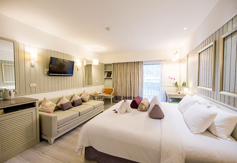 Просторные номера отеля Katathani с деревянными полами обставлены мебелью в тайском стиле и располагают балконами с видом на ландшафтные сады. В каждом номере есть кабельное телевидение и ванная комната со стеклянными стенами.