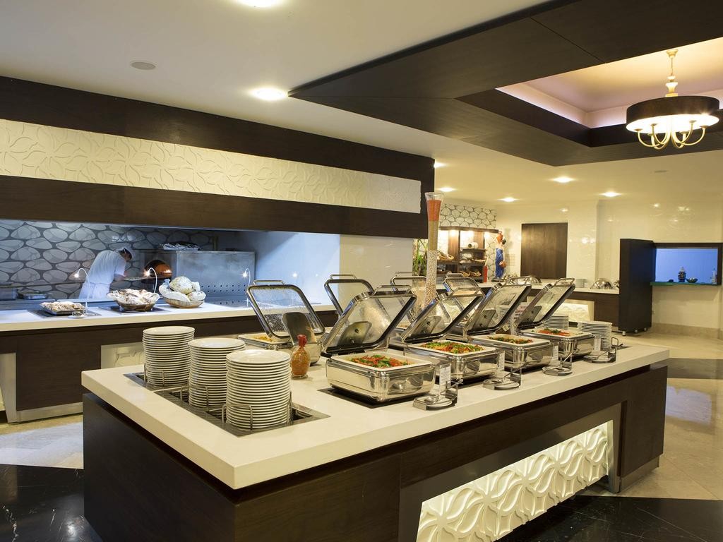 По многочисленным отзывам туристов — питание отличается разнообразием: 3 ресторана и 5 баров, где можно отведать самые разнообразные блюда: мясо, рыбу, салаты и др. Почти все приемы пищи выполнены в виде шведского стола. Постояльцы самостоятельно выбирают себе понравившиеся блюда. Десерт, который непременно стоит попробовать любителям сладкого — пахлава.