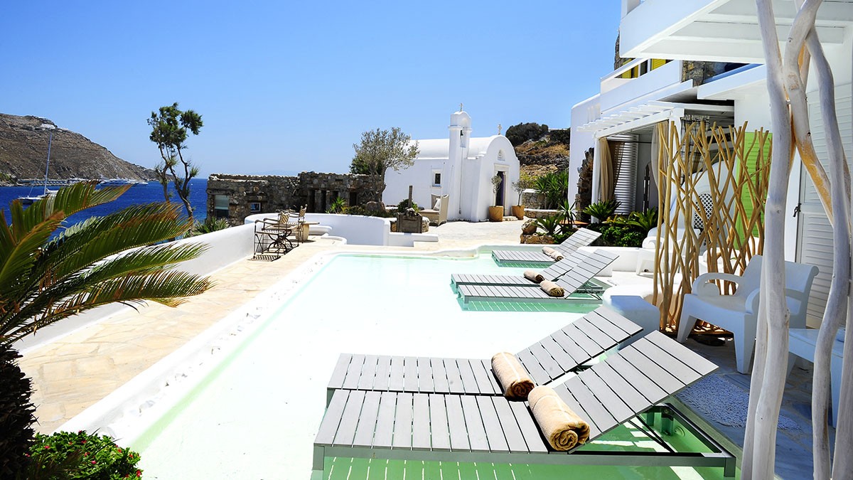 Отель Kivotos расположен на собственном частном пляже, на берегу великолепного залива Орнос, всего в 5 минутах езды от города Миконос, порта и аэропорта.
