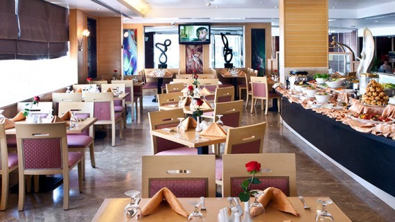 В элегантном ресторане Palm подают блюда интернациональной кухни с арабскими нотками. В круглосуточном кафе отеля можно заказать легкие закуски и изысканный кофе и чай.