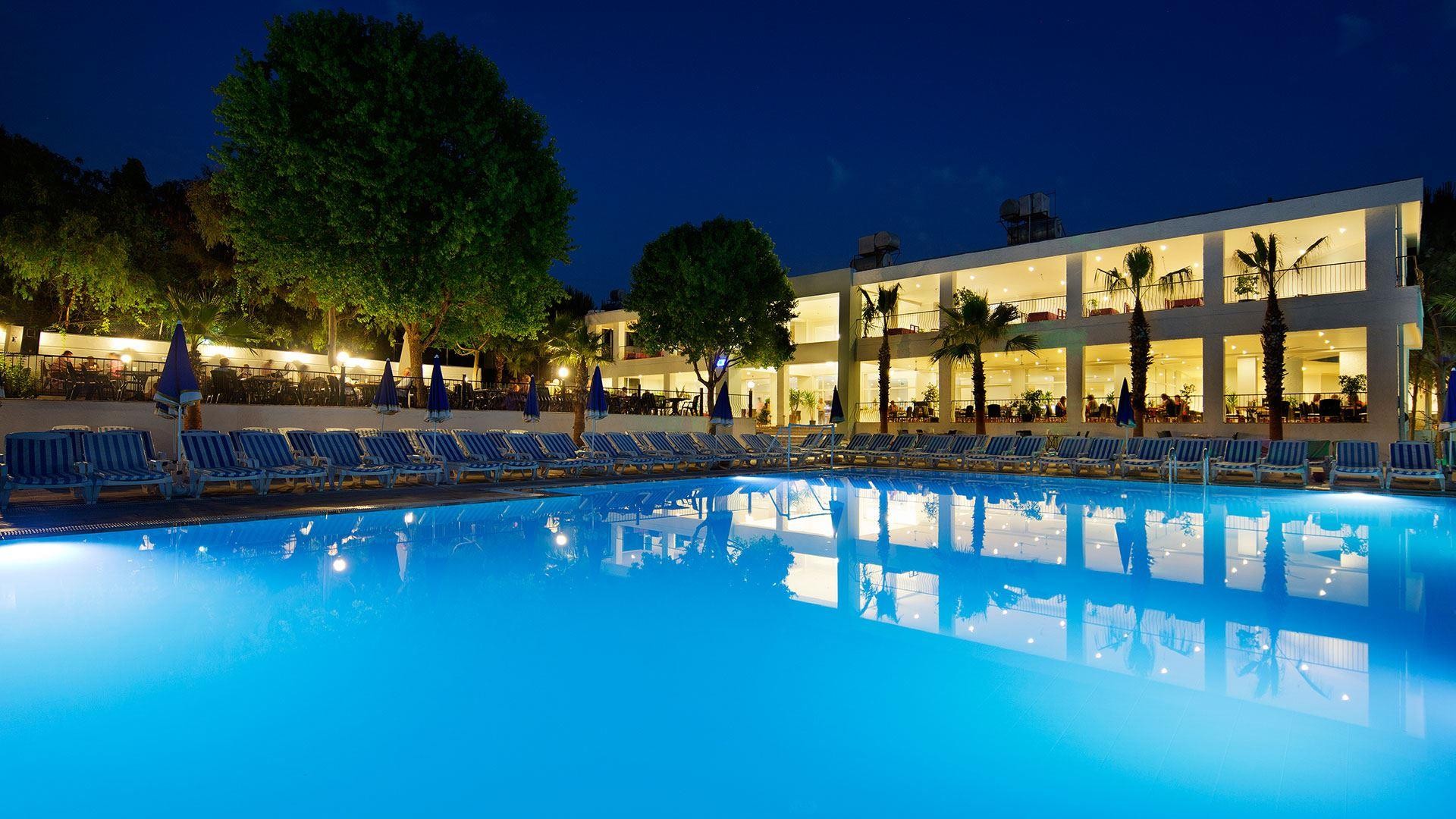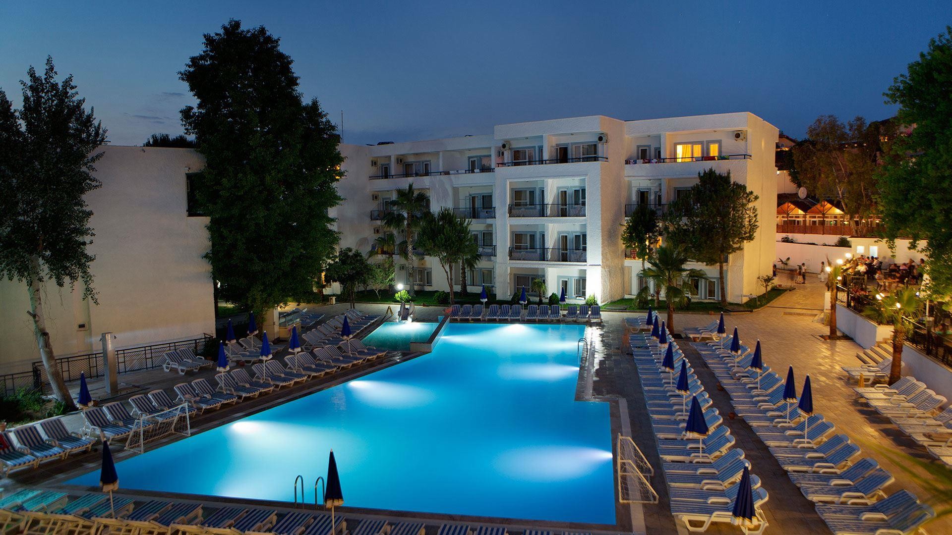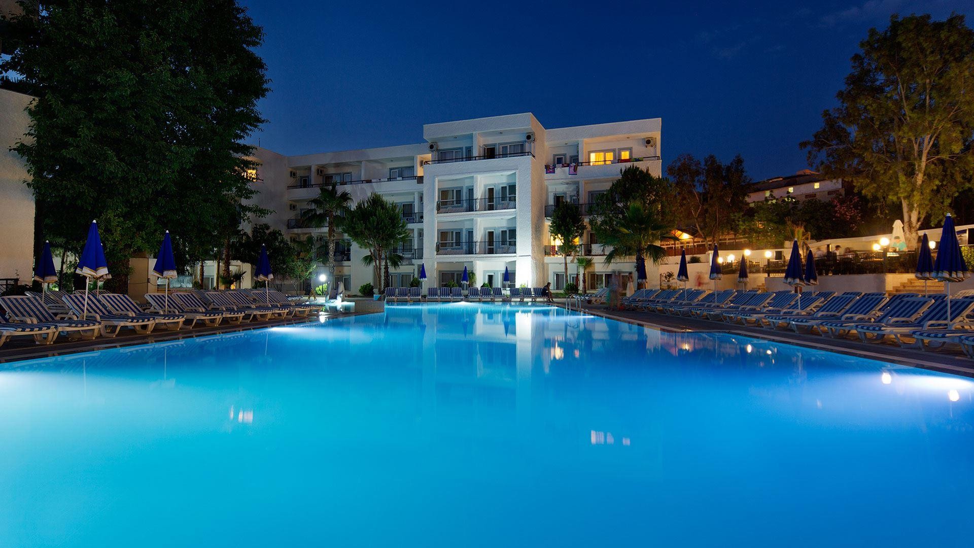 Отель расположен в п.Кумкёй, в 4 км от г. Сиде. Расстояние до аэропорта Анталии составляет 55 км.