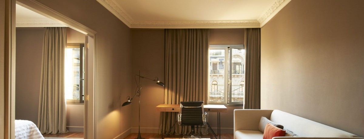 Площадь · 49 - 65 квадратных метров • Гостиная • Спальня с кроватью king-size • Ванная комната с ванной и душем с функцией «тропический дождь» • Вид на улицу Ramblas • Кондиционер • Спутниковое телевидение • Телевизор в ванной комнате • Доступ в Интернет • Телефон • Голосовая почта • Радио • Док-станция для iPod • Мини-бар • Сейф • Оборудование для чая и кофе • Утюг и гладильная доска • Пресс для брюк • Фен • Халаты • Возможно объединение номеров