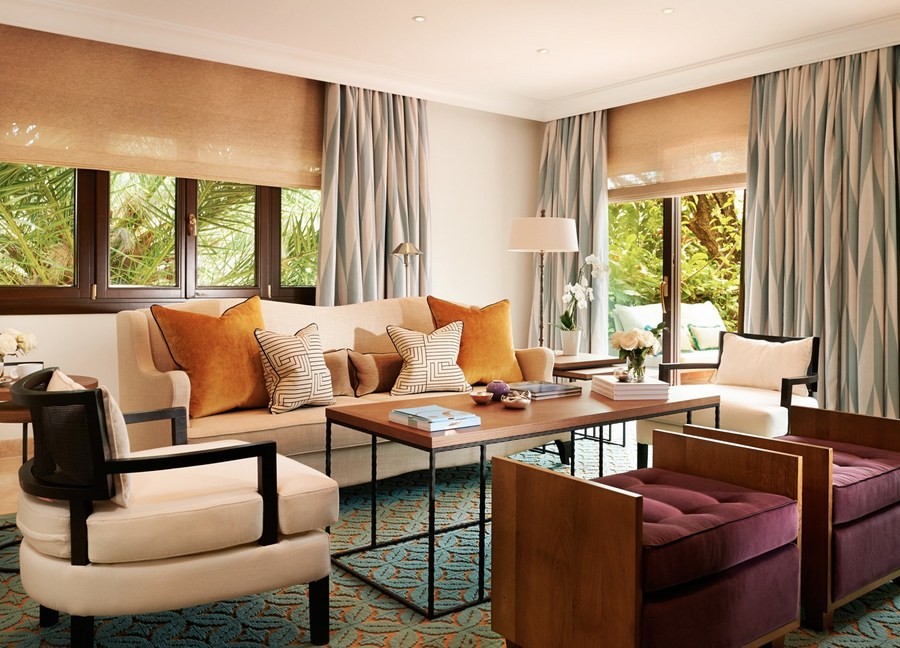 Площадь · 50 квадратных метров • Терраса • Спальня с гостиной зоной (кровать king-size или две отдельные кровати) • Гардеробная зона • Ванная комната с ванной и душем • Расположены среди садов рядом с бассейном • Вид на сад • Телевизор • DVD-плеер • Wi-Fi доступ в Интернет • Док-станция для iPod • Сейф • Мини-бар