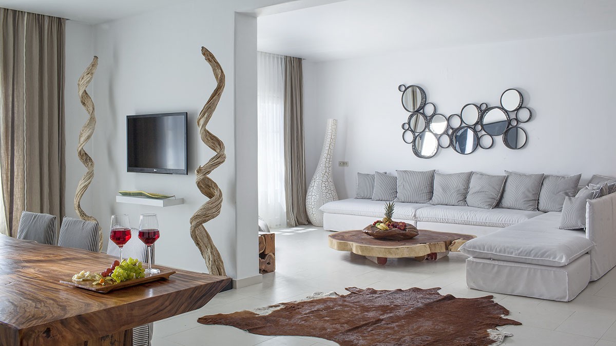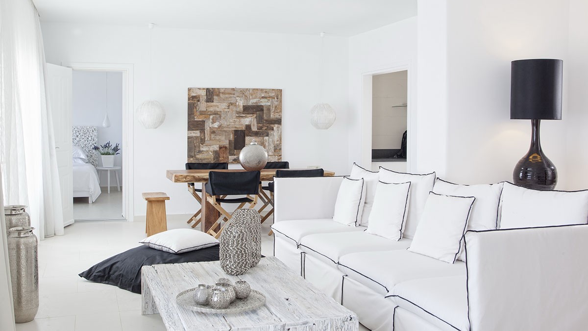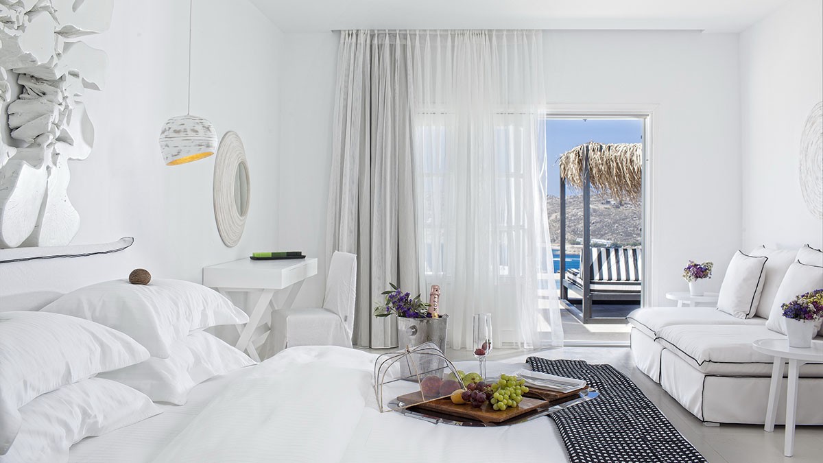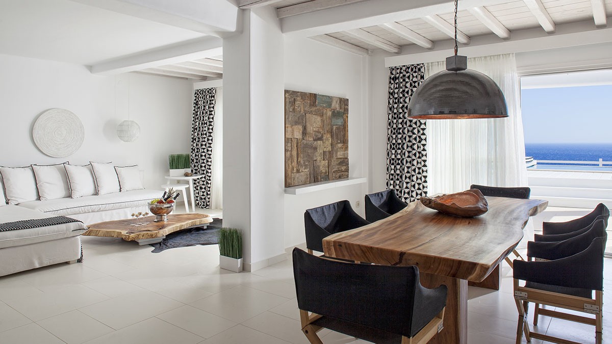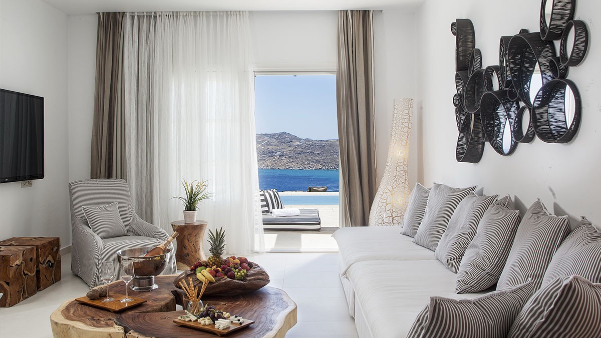 В оформлении стильных интерьеров номеров и вилл отеля Myconian Villa Collection использованы мягкие оттенки и декоративные элементы ручной работы. Из окон открывается ничем не ограниченный вид на море. В номерах и виллах установлены 3D-телевизоры с плоским экраном и DVD/MP3-плееры, оборудованы просторные гостиные зоны и ванные комнаты с тропическим душем.