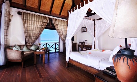 Площадь · 50 квадратных метров • Балкон или терраса • Спальня с двуспальной кроватью • Гардеробная зона • Ванная комната с ванной и душем • Расположены в двухэтажных виллах блоками по четыре номера • Вид на пляж и лагуну • Возможно объединение номеров данной категории между собой • Кондиционер • вентилятор • Спутниковое телевидение • Wi-Fi доступ в Интернет • DVD-плеер • Телефон • Сейф • Мини-бар • Оборудование для приготовления чая и кофе • Фен