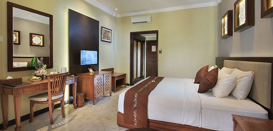 Просторные уютные номера оформлены в балийском стиле и располагают собственным балконом, телевизором с кабельными каналами, принадлежностями для чая/кофе, мини-баром и собственной ванной комнатой с ванной.