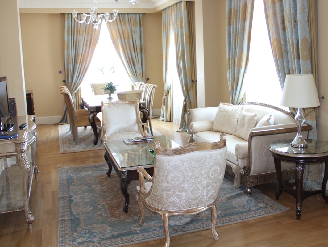 Площадь · 38-55 квадратных метров • Гостиная • Спальня с кроватью king-size • Гардеробная • Ванная комната с ванной и душем • Вид на город • Возможно объединение с номером категории Deluxe Pera view room • Кондиционер • Спутниковое телевидение • WI-FI доступ в Интернет • Телефон • Мини-бар • Сейф