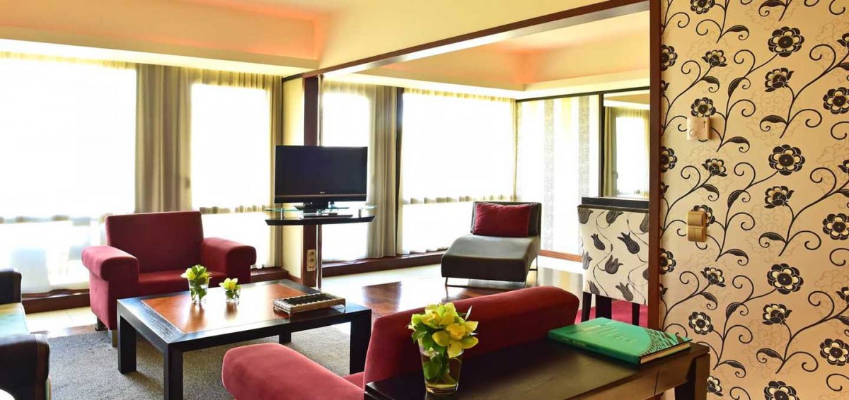 Площадь · 52 квадратных метров • Балкон • Спальня с гостиной зоной (кровать king-size, двуспальная или две отдельные кровати) • Ванная комната с ванной и душевой кабиной • DVD-плеер • Расположены со второго по шестой этаж • Вид на сад, горы или океан • Кондиционер • Спутниковое телевидение • Радио • Телефон • Доступ в Интернет • Видеомагнитофон • Оборудование для приготовления чая и кофе • Мини-бар • Сейф • Фен