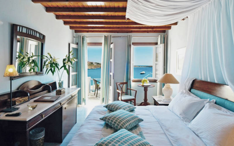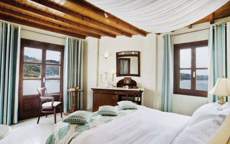 Все оформленные в светлых тонах номера отеля Petinos Beach включают в себя деревянный потолок и элементы декора в старинном стиле, а некоторые — еще и рабочий стол.