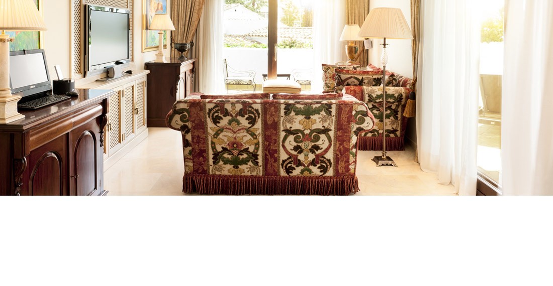 Площадь · 120 квадратных метров • Террасы • Гостиная • Столовая/переговорная • Спальня с кроватью king-size или queen-size • Ванная комната с ванной и душевой кабиной • Гостевой туалет • Расположены в главном здании • Вид на Patio Andaluz • Кондиционер • Спутниковое телевидение • Радио • Телефон • Голосовая почта • Сейф • Мини-бар • Фен • Халаты • Тапочки
