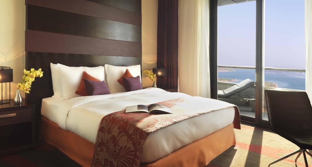 В числе удобств просторных номеров телевизор с плоским экраном, кровать размера «king-size» и ванная комната, а из окон открывается вид на Персидский залив, гольф-поле Yas Links и трассу «Формулы-1».