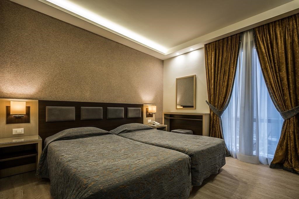 Номера отеля Rex с ковровым покрытием, сейфом и спутниковым телевидением оформлены в неоклассическом стиле. В ванной комнате каждого из них предоставляется фен и бесплатные туалетно-косметические принадлежности.