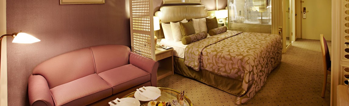 Площадь номера · 48м2 · 1 ванная комната · Две отдельные или одна большая (king size) кровать · мягкая мебель · длинный балкон · мини-бар · централизованное кондиционирование · сейф · ковровое покрытие · душ · туалет · Зеркало для макияжа · фен · для мужчин и женщин подготовлены отдельные наборы средств гигиены · LCD ТВ · спутниковое телевидение · подключение к интернету · телефон