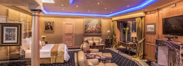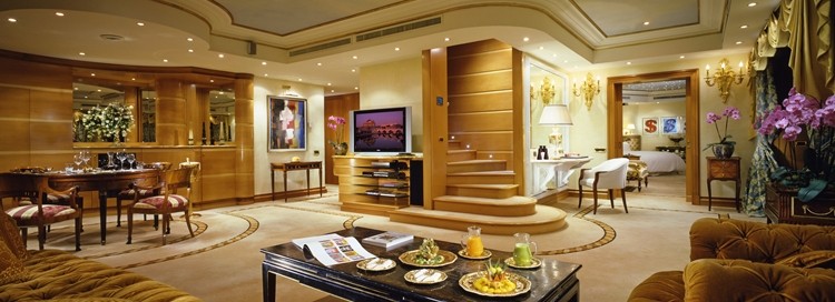 Площадь · 246 квадратных метров • 4 балкона • Гостиная • Столовая • Спальня с двумя кроватями queen-size • Гардеробная • Ванная комната c гидромассажной ванной и душевой кабиной • Домашний кинотеатр • Телевизор в ванной комнате • Массажное кресло • Панорамный вид на историческую часть Рима • Номер украшен произведениями искусства и предметами антиквариата • Возможно присоединение до четырех дополнительных спален с ванными комнатами • Номер имеет собственный винный погреб и 2 отдельных входа • Для гостей предусмотрены особые привилегии • Кондиционер • Спутниковое телевидение • WI-FI доступ в Интернет • Телефон • Мини-бар • Сейф • Фен • Халаты