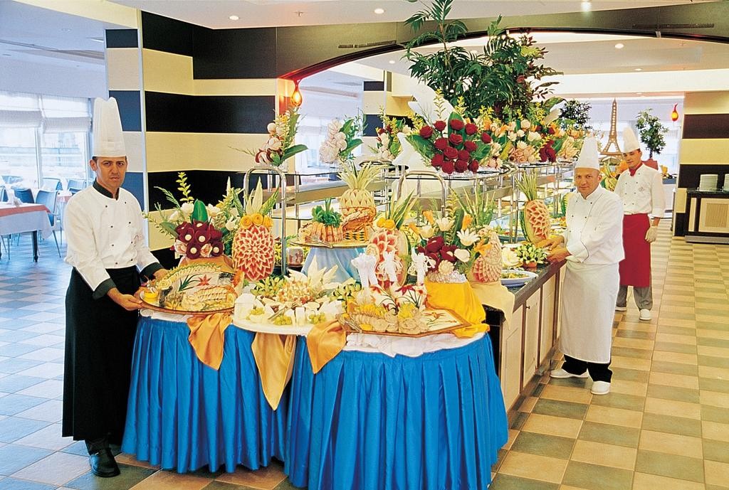 Главный ресторан «Амбросия» предлагает для гостей блюда интернациональной и местной кухни с обилием десертов, овощных, мясных фруктовых нарезок. Преобладают сезонные фрукты.