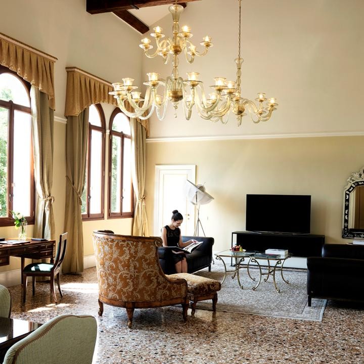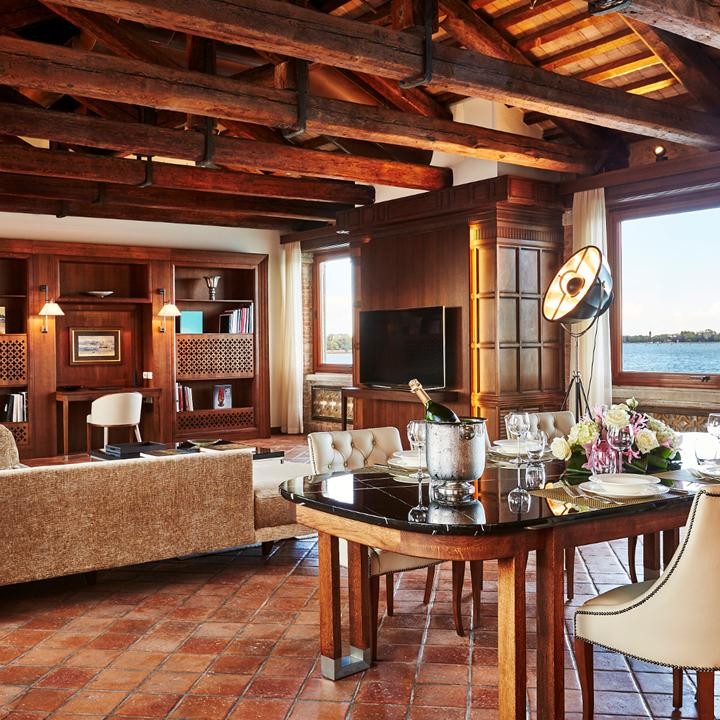 Площадь · 190 квадратных метров • Прихожая • Гостиная с обеденной и кухонной зонами • Спальня с кроватью king-size • 2 ванные комнаты (одна – с ванной, вторая – с душевой кабиной) • Оборудование для приготовления чая и кофе • Вид на лагуну, Венецию и внутренний дворик • Гости данного номера могут пользоваться частным причалом • Кондиционер • Телевизор • Wi-Fi доступ в Интернет • Сейф