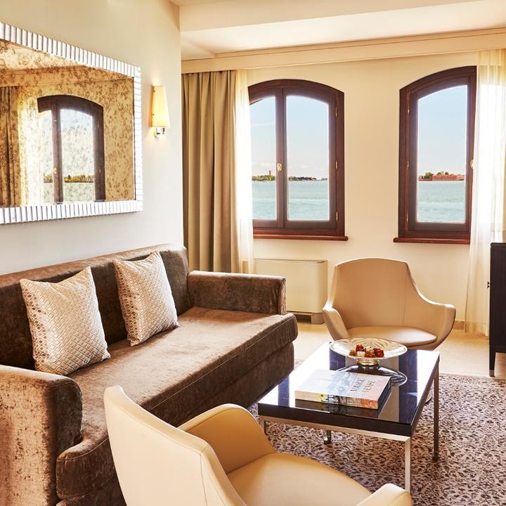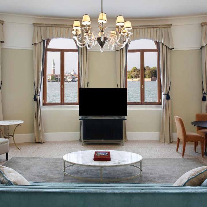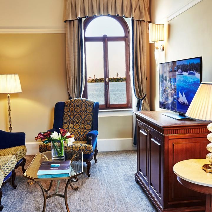 Площадь · 110 квадратных метров • Гостиная с обеденной зоной • Спальня с кроватью king-size • Гардеробная зона • Ванная комната с ванной и душевой кабиной • Кондиционер • Оборудование для приготовления чая и кофе • Расположен в корпусе Navigante Wing • Вид на лагуну и колокольню на площади Сан-Марко • Кондиционер • Телевизор • Wi-Fi доступ в Интернет • Сейф