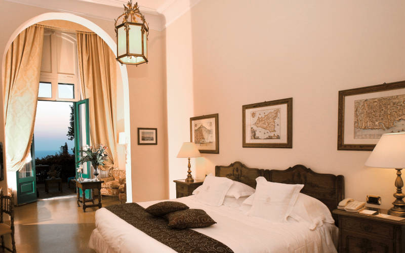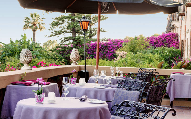 С террас уникального отеля San Domenico Palace открывается вид на гору Этна и залив Таормины.