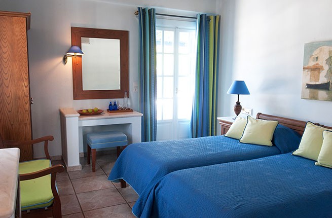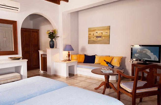 Отель, построенный в оригинальном кикладском стиле, с традиционными побеленными стенами и деревянными жалюзи темно-синего цвета, расположен в окружении природного ландшафта в заливе Хулакия, неподалеку от пляжа и города. К услугам гостей бесплатный Wi-Fi на всей территории.
