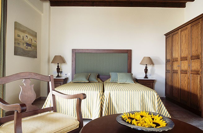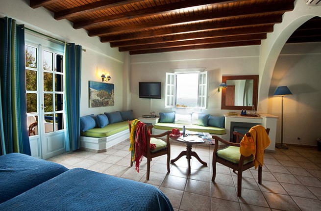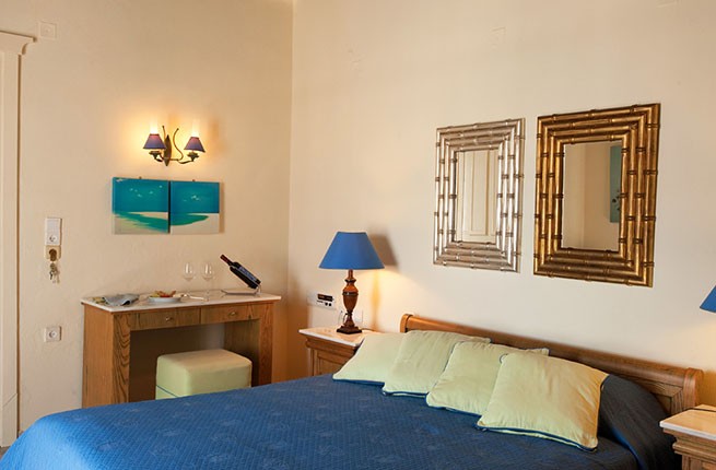 В каждом номере есть балкон или веранда с панорамным видом на холмы вокруг залива Хулакия, сад или таинственное Эгейское море.