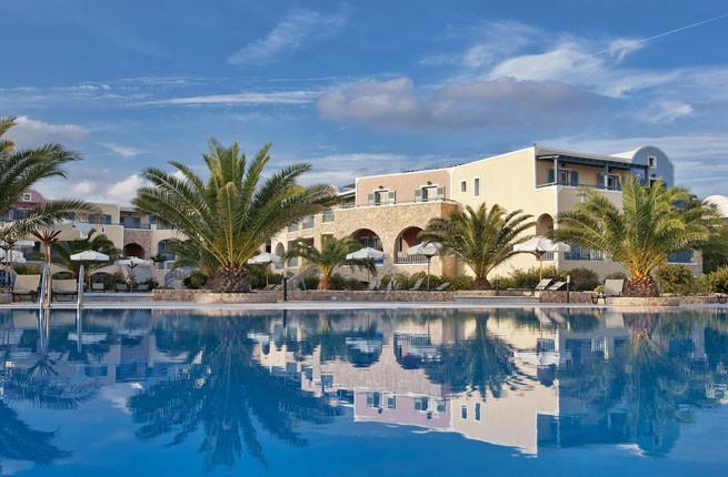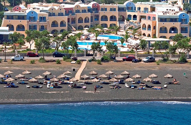 Этот курорт расположен прямо на знаменитом космополитическом пляже Периволоса, в юго-восточной части острова Санторини.