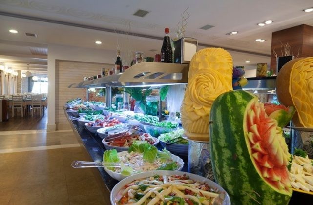 Гостям предлагается питание по системе «все включено». Отзывы туристов, побывавших здесь, подтверждают, что кормят в гостинице отлично — предлагаемое меню разнообразное, а продукты всегда свежие. Есть огромный выбор мясных и рыбных блюд, сыров, гарниров, морепродуктов, есть гриль, каждый день подаются фрукты, мороженное, кондитерские изделия в большом ассортименте.