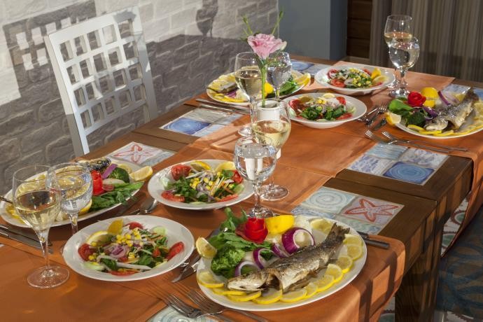 Seher Sun Palace — это настоящий рай для взрослых и маленьких гурманов, работающий по системе «все включено». В распоряжении гостей несколько ресторанов, в которых угощают блюдами местной и международных кухонь. Есть специальное диетическое и детское меню. В огромном ассортименте предоставлены мясные и рыбные блюда, здесь всегда подают много овощей и фруктов. Все продукты всегда свежие и натуральные.