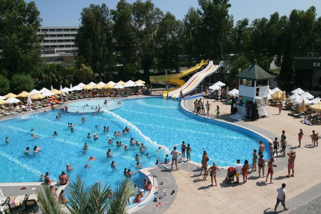 В курортном комплексе Шервуд Гринвуд Резорт все продумано до мелочей для того, чтобы гости не скучали. Любимая зона детей и взрослых — большой открытый бассейн и рядом маленький «лягушатник». К бассейну прилагаются две экстремальные горки для любителей водных развлечений и две менее крутые горки для деток.