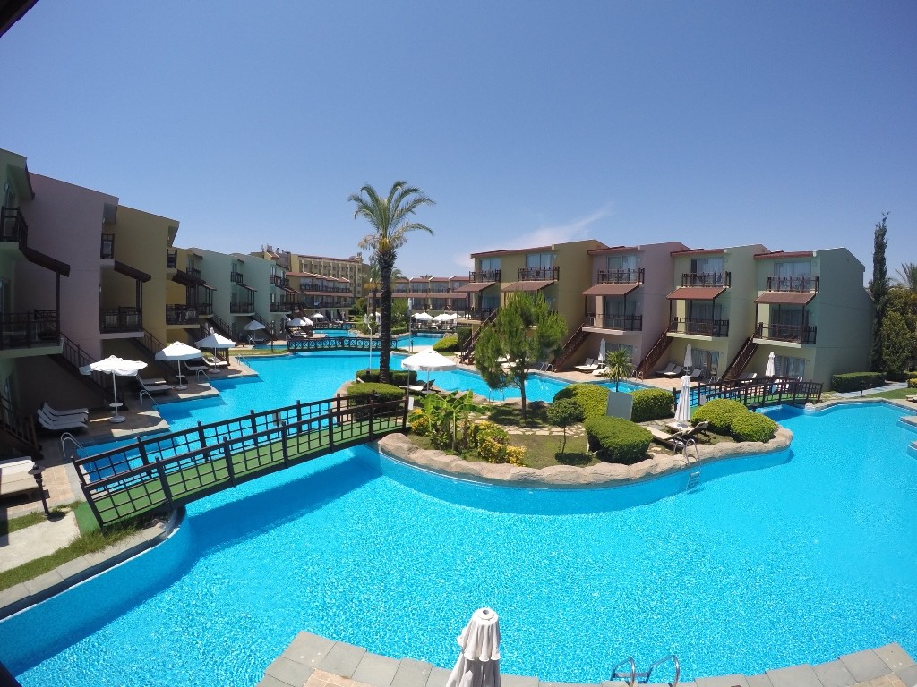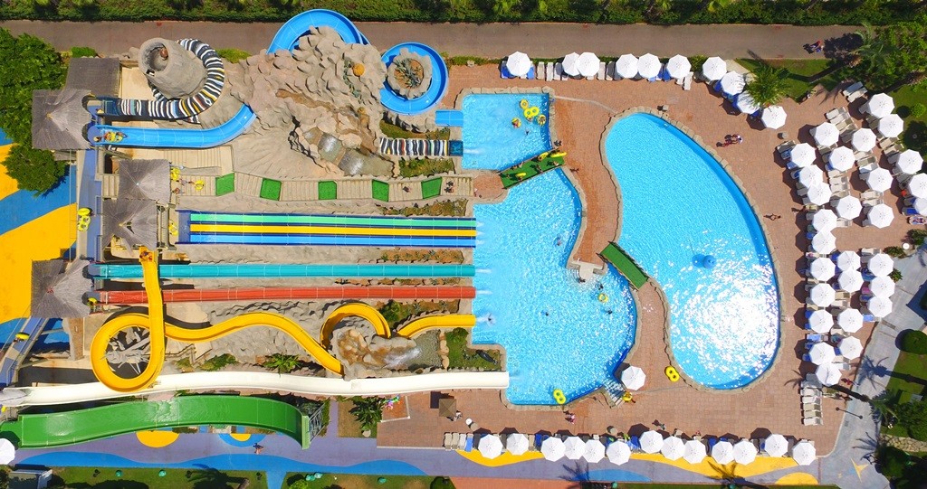 Отель знаменит своими аквапарком и парком развлечений: четырнадцать бассейнов, столько же водных горок и десяток аттракционов вызывают восторг у маленьких гостей и их родителей.