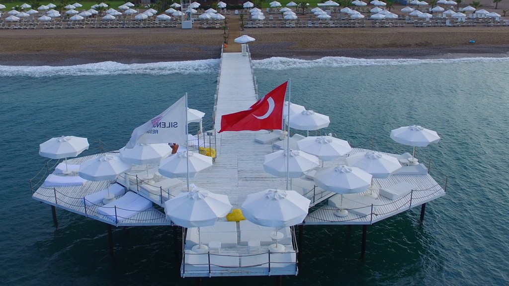 Сайленс Бич Резорт состоит из главного семиэтажного здания, трехэтажных домиков и корпуса эко-клуб. Последний раз ремонт проводился здесь год назад, поэтому Вы будете приятно удивлены блеском, красотой и чистотой, царящими в каждом уголке гостиницы, как и положено категории пять звезд. Помимо жилых зданий на территории есть кинотеатр, талассо-центр, торговые лавки, салон красоты и фитнес-клуб, теннисные корты, поля для мини-гольфа и футбола.