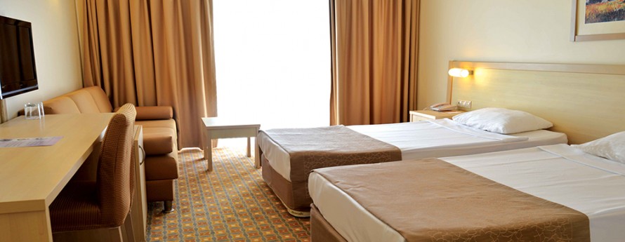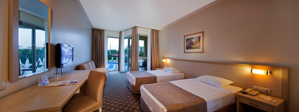 Номера расположены на 3 этаже блока и не имеют прямого выхода к бассейну · Во всех номерах керамический пол · ванная комната (душ) · центральная система кондиционирования · телефон · фен · спутниковое TV (информационные и музыкальные каналы) · мини-бар · сейф · балкон · раскладной диван.