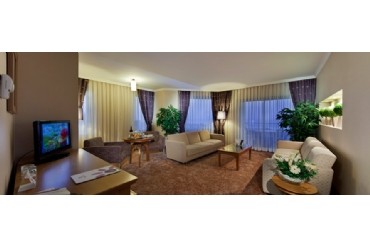 Все номера имеют вид на море · 1 спальная комната · 1 гостиная (2 раскладных дивана) · коридор · номера с ковровым покрытием · центральная система кондиционирования · 2 ванные комнаты (ванна, в одной из них имеется джакузи) · телефон · фен · 2 спутниковых TV(информационные и музыкальные каналы) · 2 мини-бара · сейф · балкон.