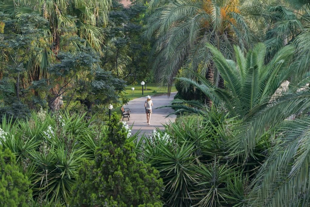 Территория отеля представляет собой сказочный «ботанический сад». Везде посажены экзотические растения, которые приятно пахнут, красиво цветут и радуют взор. Среди растений гуляют животные: петухи, утки, зайцы, ежики, павлины. На огромном пространстве оборудовано большое количество мест для развлечения. Гости купаются в одиннадцати бассейнах, катаются с горок в аквапарке и ужинают в ресторанах с изысканными блюдами. Фишкой является спокойная приятная музыка, которая сопровождает туриста в любой локации гостиничного комплекса. В холле играют на арфе. Музыкальное сопровождение создает впечатление полного расслабления и нахождения в раю.