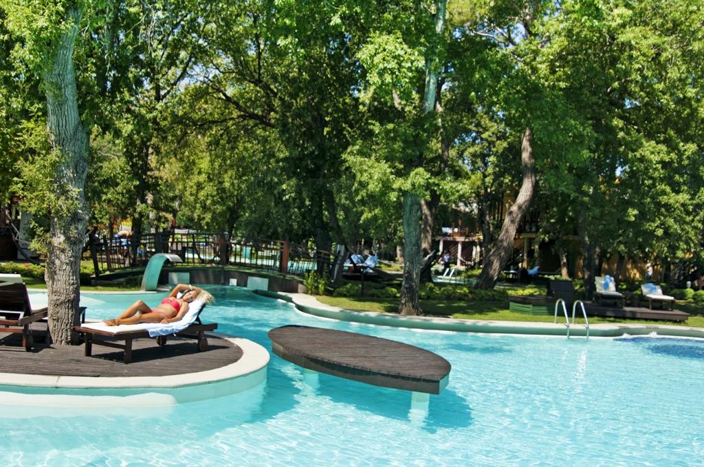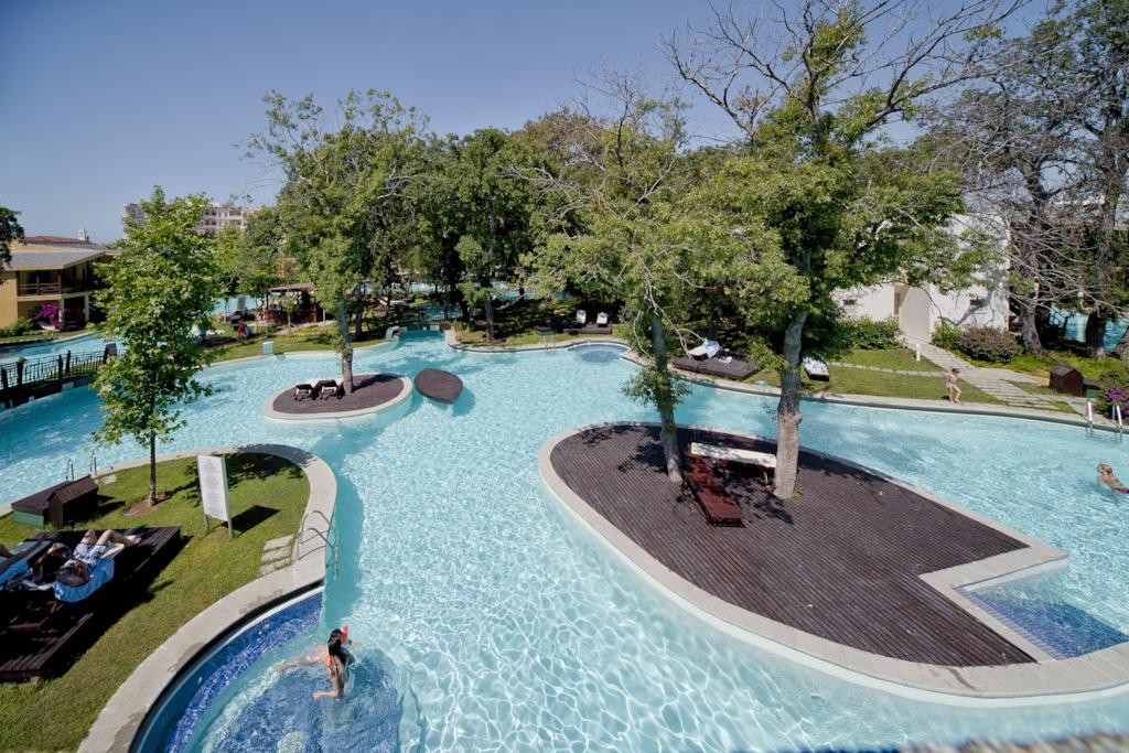 По всей территории гостиницы растут кипарисы, пальмы и множество экзотических цветов. Дети проведут незабываемые дни, играя в парке водных аттракционов, участвуя в конкурсах аниматоров и исследуя улочки сказочного городка. Отель с таким количеством звезд полностью оправдывает высокий статус — гостей порадует высокое качество обслуживания, современный дизайн интерьеров и разнообразное меню.