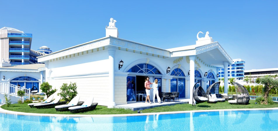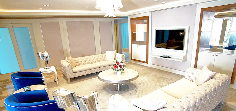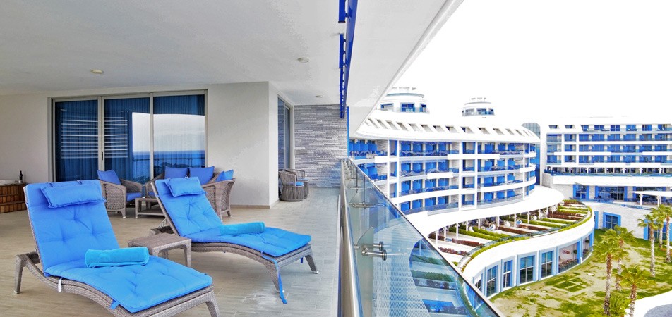 Площадь · 70м2 · одной спальни, одной гостиной и гардеробной зоны · одна двуспальная кровать, один раскладной и один угловой диван · просторный балкон и бассейн площадью 30-38м2 обогрев и охлаждение номеров происходит через центральную систему кондиционирования воздуха · LCD-телевизор · электронный сейф · фен · гардеробная зона · ежедневно пополняемый мини-бар · душевая и прямой телефон · В номерах к вашим услугам широкополосный беспроводной интернет.