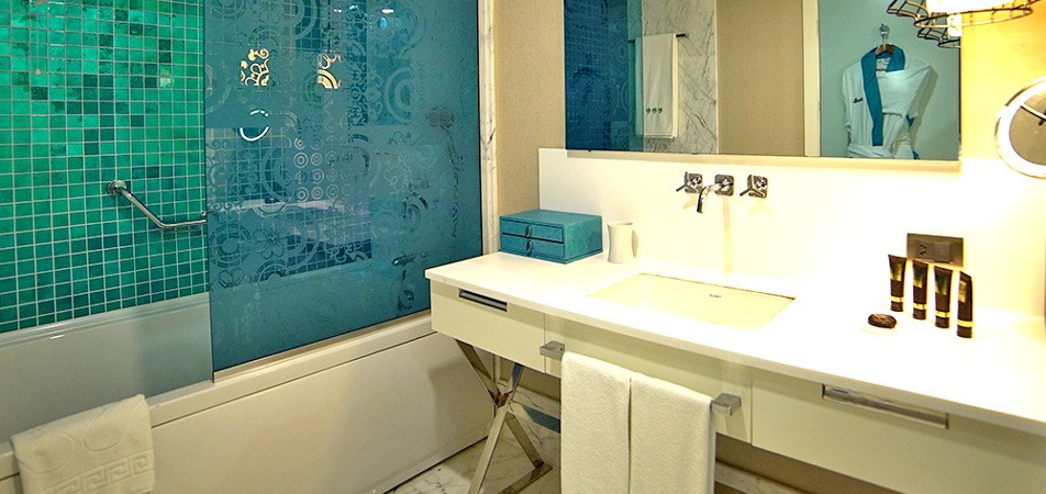 Площадь · 385м2 · три спальни, одна гостиная и одна гардеробная зона · одна двухместная кровать, четыре одноместные кровати, а также большой мягкий уголок в гостиной · полностью укомплектованная мини-кухня · хамам, · сауна · парильня · оборудованный фитнес-кабинета · также джакузи с непревзойденным видом · Кроме того, в номере две ванные комнаты (в одной ванна, в другой душевая кабина) · балкон · обогрев системой VRV. В стандартный перечень услуг · прилагающихся к номеру · входит личный лакей · услуга VIP-трансфера до аэропорта · пользование личными крытыми верандами на пляже · а также услуга бара (70cl местных/импортных алкогольных напитков).