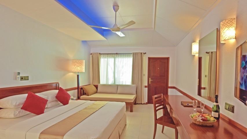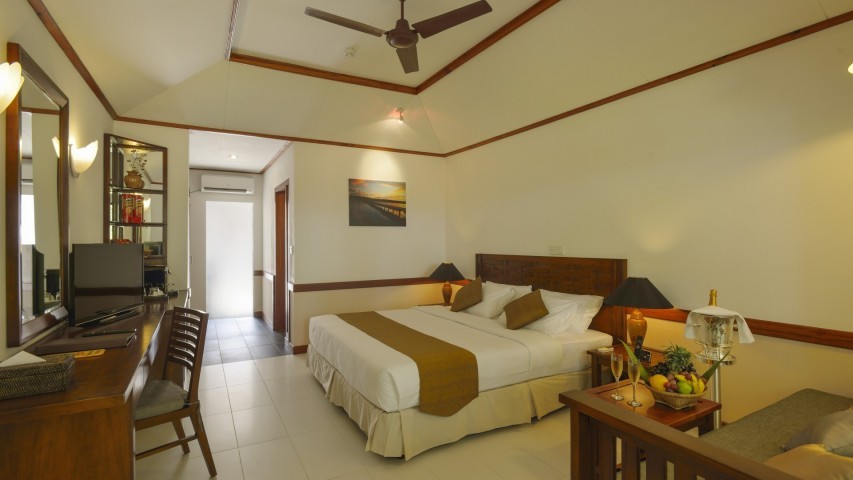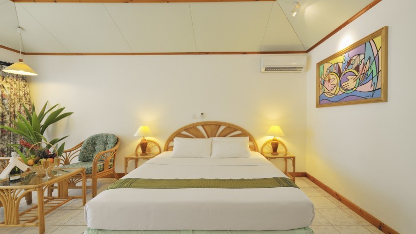 Площадь · 21 квадратных метров • Веранда • Спальня с двуспальной или двумя отдельными кроватями • Ванная комната с душем • Расположены в бунгало на пляже • Вид на море • Кондиционер • Спутниковое телевидение • Телефон • Голосовая почта • Доступ в Интернет • Мини-бар • Сейф • Фен