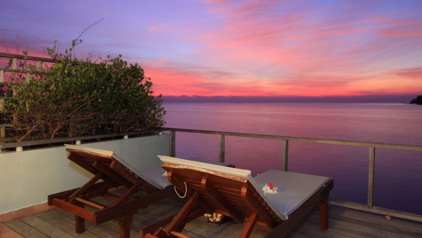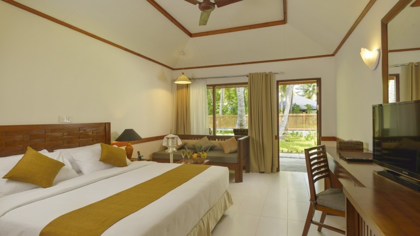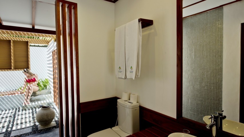 Площадь · 26 квадратных метров • Веранда • Спальня с двуспальной или двумя отдельными кроватями • Ванная комната с ванной • Душ на открытом воздухе • Расположены в бунгало на пляже • Вид на море • Кондиционер • Вентилятор • Спутниковое телевидение • Телефон • Сейф • Мини-бар • Оборудование для приготовления чая и кофе • Кофемашина espresso • Фен