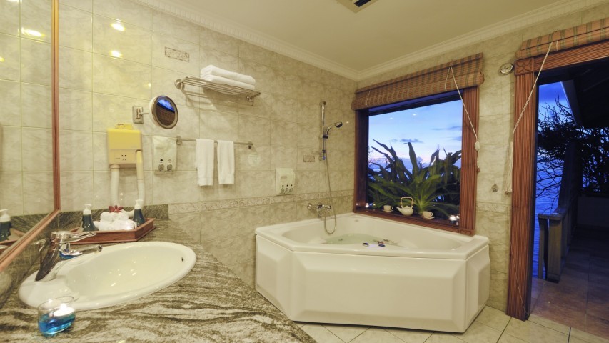 Площадь · 28 квадратных метров • Терраса • Спальня с двуспальной или двумя отдельными кроватями • Ванная комната с ванной на открытом воздухе и душем • Вентилятор • Док-станция для iPod • Оборудование для приготовления чая и кофе • Кондиционер • Вентилятор • Спутниковое телевидение • Телефон • Сейф • Мини-бар • Оборудование для приготовления чая и кофе • Кофемашина espresso • Фен