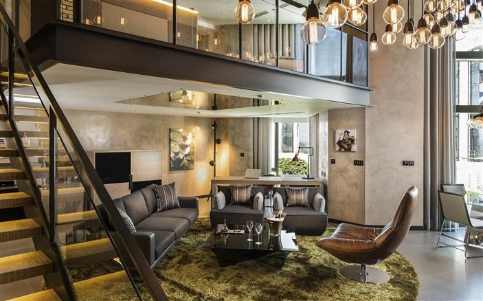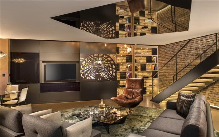 Площадь · 97 квадратных метров • 2 этажа • Просторная галерея, высотой два этажа • Основная спальня • Просторная гостиная с обеденным столом для 4 человек • Мультимедийная панель • Ведерко со льдом и мини-бар • Туалетный столик • Ванна • Душевая кабина • Туалет для гостей • Телевизор с экраном диагональю 65» в гостиной • Телевизор с экраном диагональю 56» в спальне на этаже с мезонином • Полностью автоматизированная система освещения