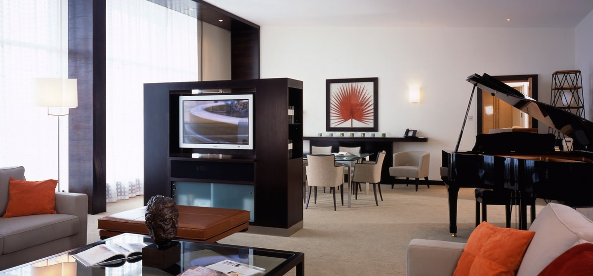 Площадь · 145 квадратных метров • Прихожая • Гостиная с обеденной зоной (стол на 8 персон) • Кухня • Кладовая • 2 спальни (одна – с кроватью king-size) • Гардеробная • 2 ванные комнаты (одна – с ванной и душем) • Фортепьяно • Вид на город • Кондиционер • Телевизор • Wi-Fi доступ в Интернет • Док-станция для iPod • Телефон • Голосовая почта • Сейф • Мини-бар • Фен • Халаты • Тапочки