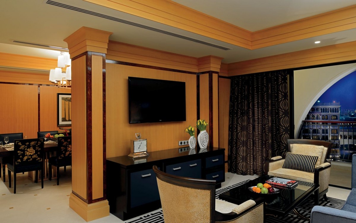 Площадь · 121 квадратный метр • Терраса • Гостиная • Столовая • 2 спальни (одна с кроватью king-size, вторая – с двумя отдельными кроватями) • 2 ванные комнаты (одна с ванной и душевой кабиной с функцией «тропический дождь») • DVD-плеер • Расположены в саду • Вид на сад или мечеть Шейха Заида • Услуги персонального камердинера • Кондиционер • Спутниковое телевидение • Док-станция для iPod • WI-FI доступ в Интернет • Телефон • Голосовая почта • Сейф • Мини-бар • Оборудование для приготовления чая и кофе •Утюг и гладильная доска • Фен • Халаты и тапочки