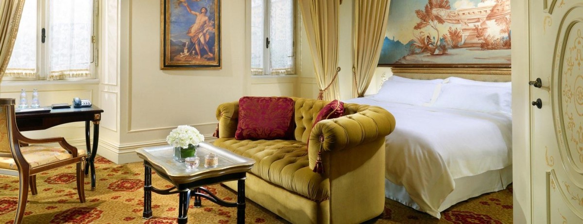 Площадь · 35 квадратных метров • Спальня с кроватью king-size, queen-size или двумя отдельными кроватями • Ванная комната • Возможно объединение с номером категории Junior suite • Кабельное телевидение • Телефон • Высокоскоростной доступ в Интернет • Телефон в ванной комнате • Мини-бар • Сейф • Фен • Халаты • Тапочки • Меблировка сочетает стили времен Французской Империи, времен Реставрации монархии и Людовика XV • Каждый номер украшен оригинальной фреской ручной работы, а также светильниками из муранского (венецианского) стекла
