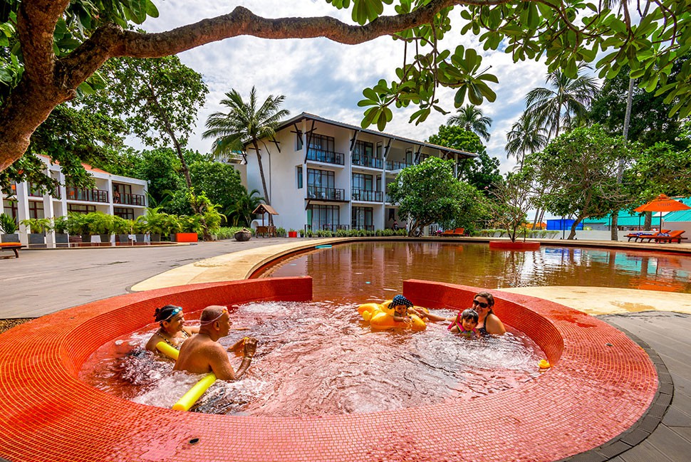 К услугам гостей 3 уникальных бассейна, в том числе первый на Шри-Ланке самый длинный в Азиатско-Тихоокеанском регионе плавательный бассейн со стеклянным фасадом, расположенный в собственном саду на пляже. Из отеля открывается прекрасный вид на Индийский океан. Бассейн Sun — первый в мире плавательный бассейн с водой алого цвета, оттенок которой напоминает закат на Унаватуне. Кроме того, обустроен детский плавательный бассейн Turtle.