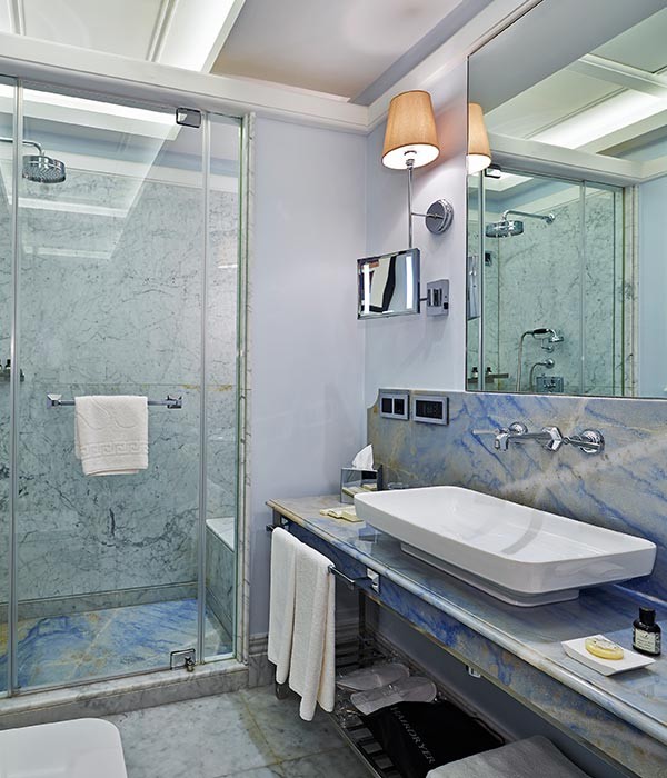 Площадь · 40 квадратных метров • Кровати 1 King • Гостиная зона • Камин • Два балкона • Мраморная ванная комната • Ливневый душ • Большая софа • Вид на старый город • Телевизор • Рабочий стол • Док станция iPod • Халат и тапочки • Мини бар • Wi-Fi • Бутылированная вода • Кофе машина • Чайная установка