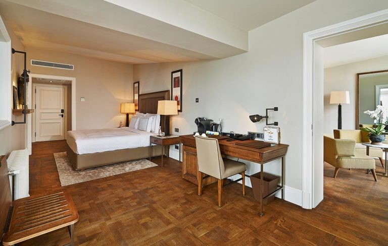 Площадь · 83 квадратных метров • Кровати 1 King • Гостиная зона • Камин • Два балкона • Мраморная ванная комната • Ванна • Ливневый душ • Большая софа • Вид на старый город • Телевизор • Рабочий стол • Док станция iPod • Халат и тапочки • Мини бар • Wi-Fi • Бутылированная вода • Кофе машина • Чайная установка