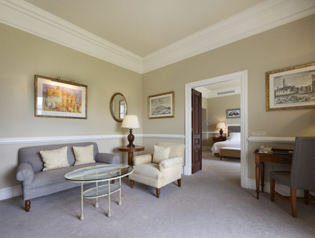 Площадь · 60 квадратных метров • Гостиная • Спальня с двуспальной или двумя отдельными кроватями • Ванная комната с ванной и душем с функцией «тропический дождь» • Оборудование для приготовления чая и кофе • Расположены в корпусах Villa Padierna и Linares • Вид на сады • Возможно объединение с номеров категории Junior suite • Кондиционер • Спутниковое телевидение • Радио • Телефон • Голосовая почта • Сейф • Мини-бар • Фен • Халаты • Тапочки